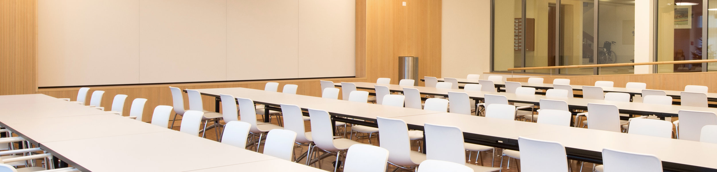 Unser Mehrzwecksaal bietet Platz für bis zu 90 Personen in Bankett-Bestuhlung und bis zu 120 Personen in Konzert-Bestuhlung.